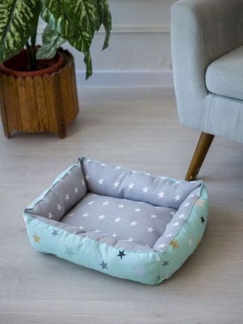 Лежак для кошек и собак "звезды" серый, зеленый