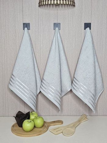 Набор махровых полотенец 3 шт (40*70) светло-серый, полоса