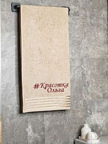 Полотенце с вышивкой 70*140 "Красотка Ольга" бежевое