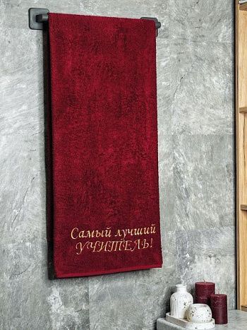 Полотенце с вышивкой 70*140 "Лучший УЧИТЕЛЬ" бордо