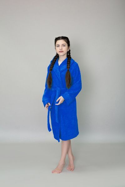 Халат махровый детский с капюшоном васильковый