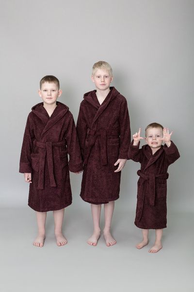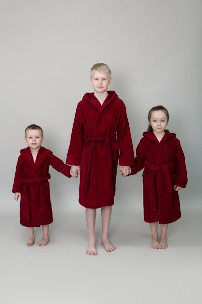 Халат махровый детский с капюшоном бордовый