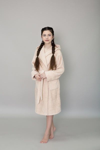 Халат махровый детский с капюшоном бежевый