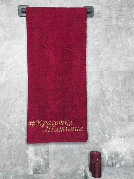 Полотенце с вышивкой 70*140 "Красотка Татьяна" бордо