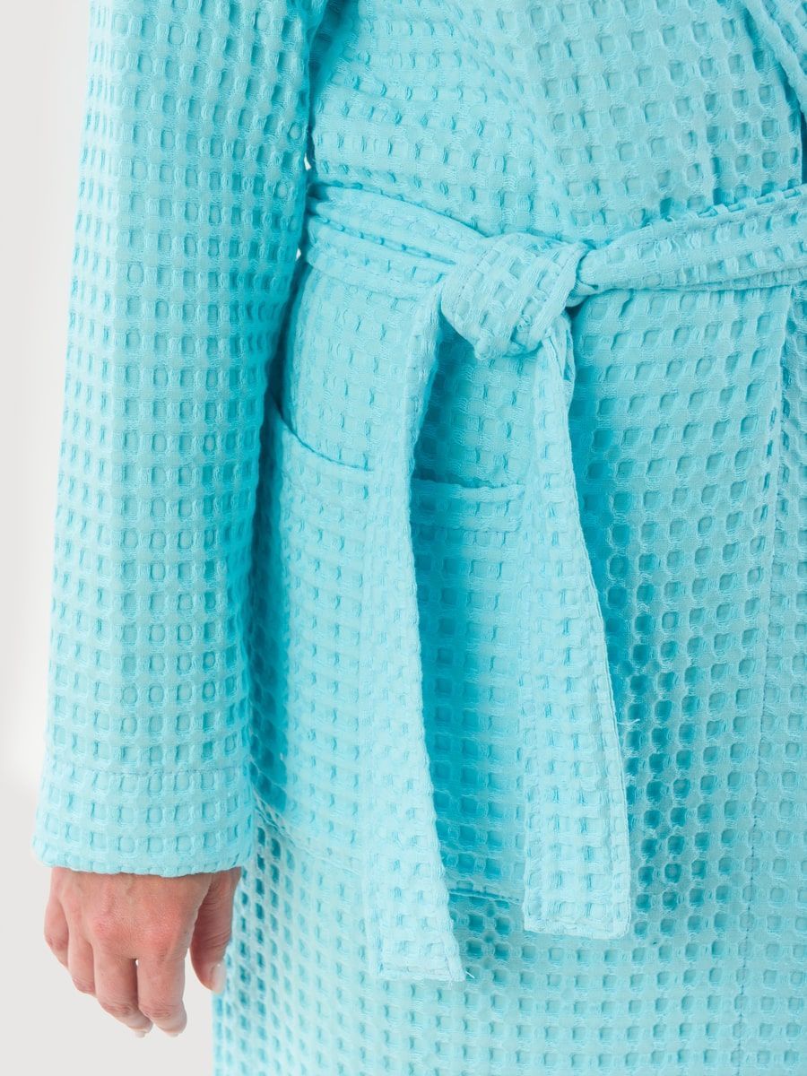 Вафельный халат «Комфорт» в крупную клетку с карманами и пояском. Благодаря высочайшему качеству ткани, халат не растягивается, очень прочен и обеспечивает максимум комфорта.