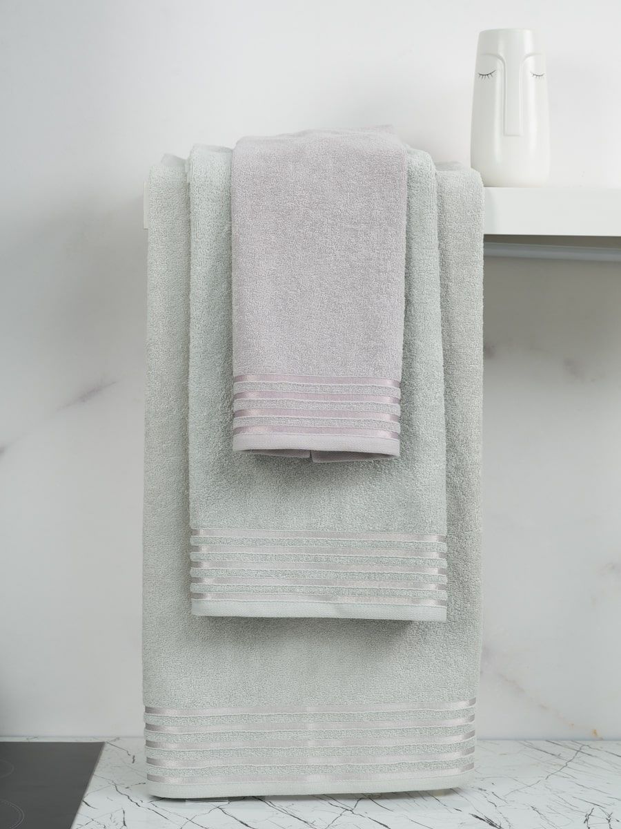 Махровое полотенце для душа нейтрального светло-серого цвета с отделкой в виде атласных полос. Оно приятно не только внешне, но и на ощупь: мягкое, теплое, комфортное. Плотно расположенные петельки махры быстро высушат и согреют кожу после водных процедур. А благодаря универсальному цвету и размеру такое махровое полотенце подойдет всей семье. Полотно изготовлено в Узбекистане , который издавна славится производством махровых изделий высочайшего качества. В составе ткани 100% хлопок, что гарантирует высокую впитываемость, экологичность и гипоаллергенность изделия. Полотенце обладает высокой износостойкостью и не требует особого ухода. При соблюдении условий стирки оно не деформируется и не теряет цвет, сохраняя свой первоначальный вид долгие годы.