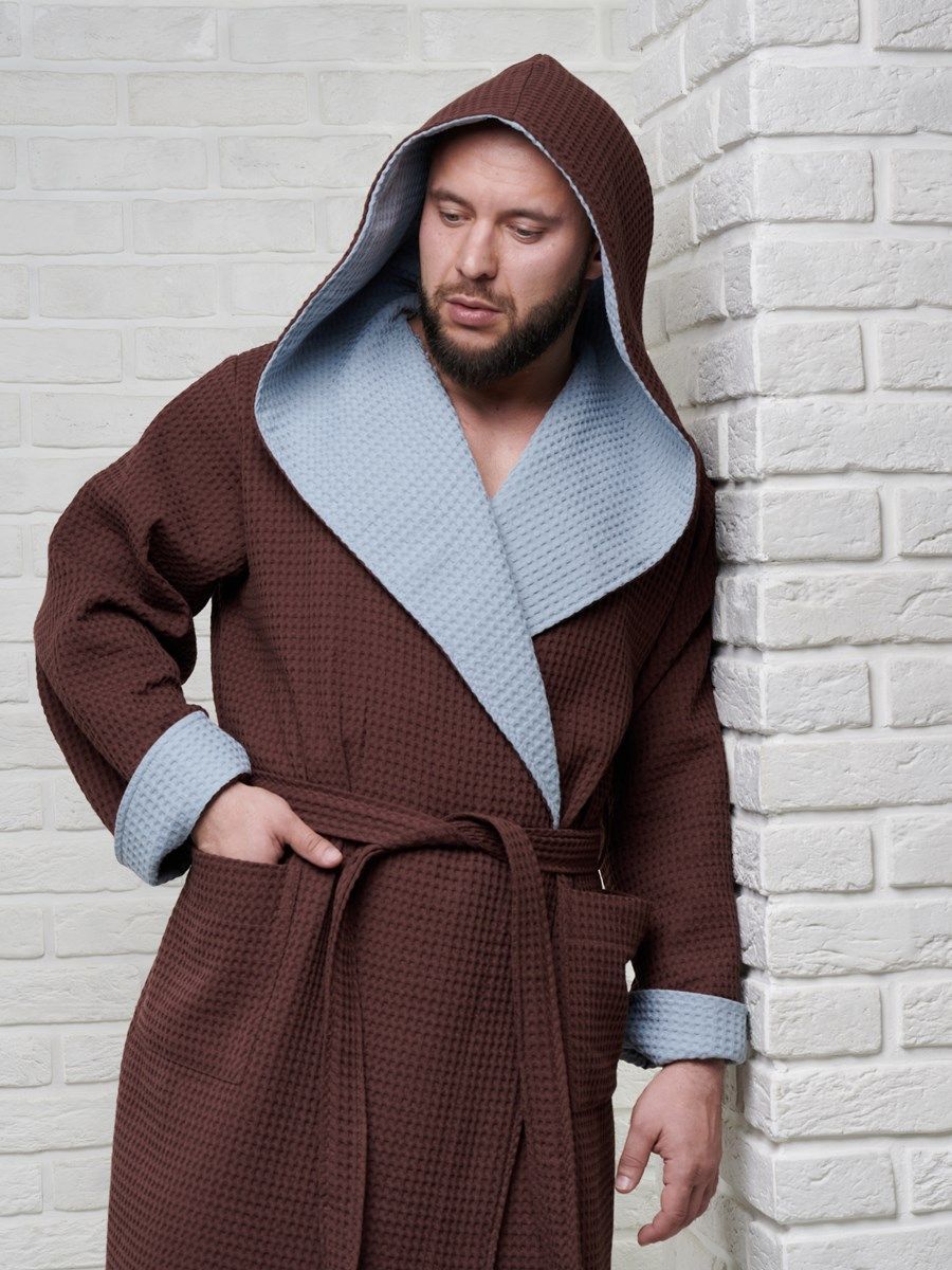 Халат вафельный с капюшоном, два цвета, темный шоколад
