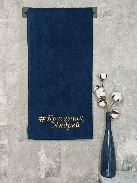 Полотенце с вышивкой 70*140 "красавчик" Андрей темно-синее