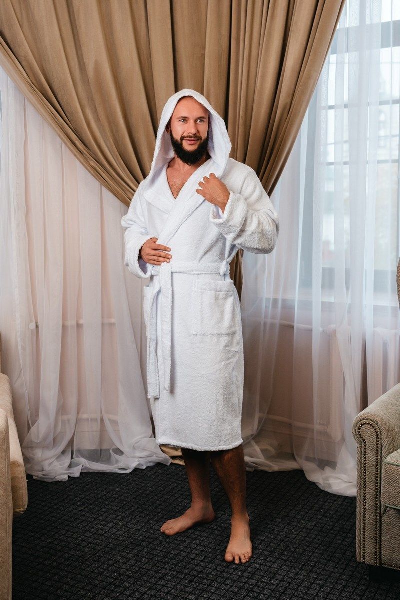 После стирки хлопковая ткань дает незначительную усадку в пределах ГОСТ, поэтому мы рекомендуем покупать махровые халаты с капюшоном на размер больше.
