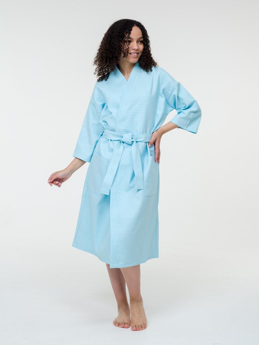 Халат вафельный голубой